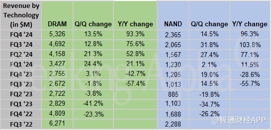 按业务划分,美光科技第四季度DRAM营收同比增长93%,至53亿美元,占总营收的69%;NAND营收同比增长96%,至24亿美元,占总营收的31%。
