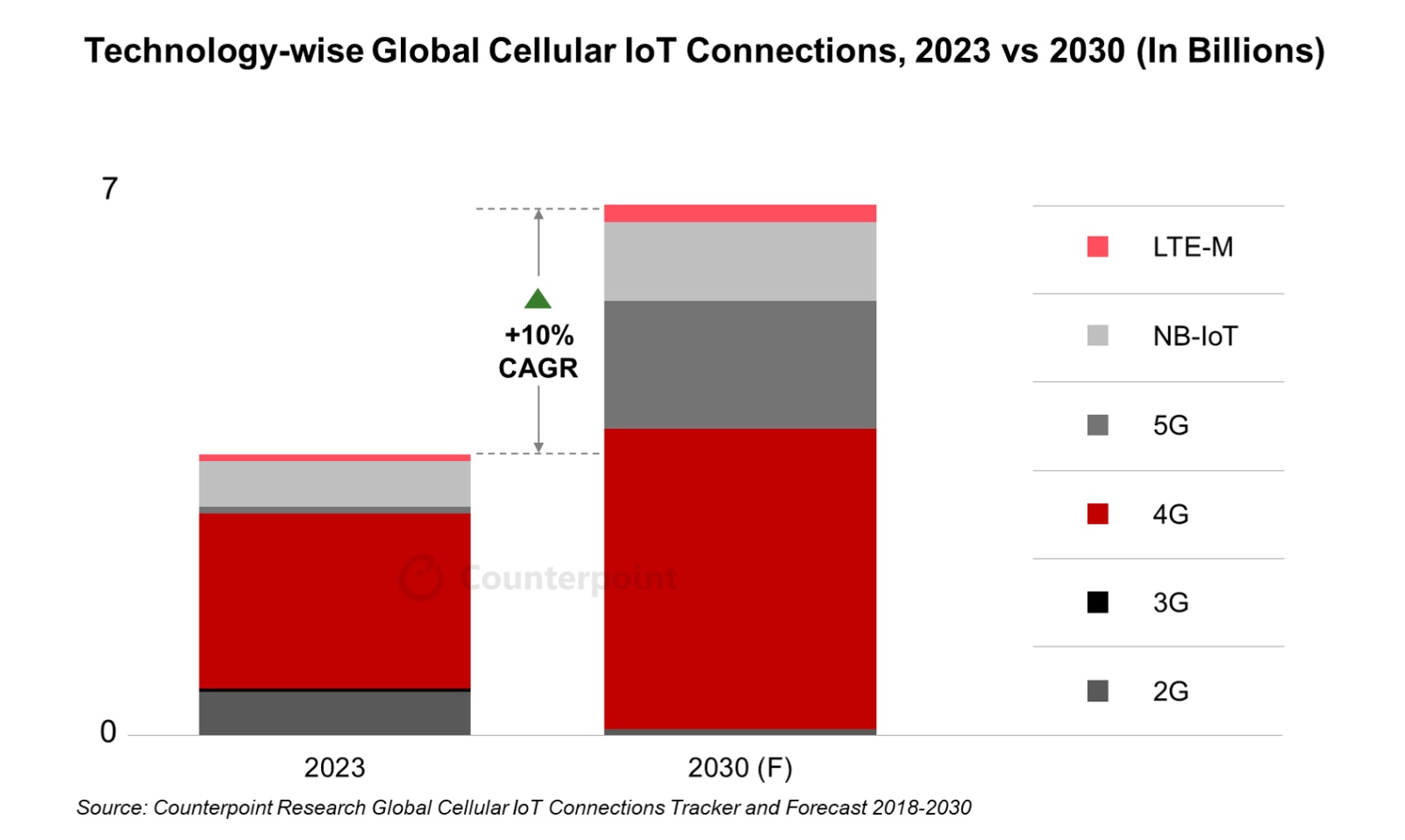 全球运营商一直在稳步扩大其蜂窝物联网业务。Counterpoint 研究分析师 Siddhant Cally 在评论市场前景时表示:“我们正目睹公共设施和联网汽车等蜂窝物联网用例的大幅增长。许多新兴国家正在实施数字化转型计划,优先部署公共服务解决方案。随着5G 的技术的成熟,营商可以利用 5G 提供的海量机器类型通信 (mMTC) 的巨大潜力,将在推动基于网络连接的收入方面发挥关键作用,尤其是在 2G 和 3G 技术逐步淘汰的情况下。”