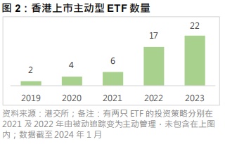 恒指公司提到,尽管香港市场主动型ETF的发展时间相对晚于其他市场,但过去几年录得强劲增长。自首只主动型ETF于2019年6月在香港上市以来,至2023年底,在港上市的主动型ETF数量已增加至24只,总市值高达86亿港元。此外,2023年主动型ETF录得1,620万港元的日均成交额,较2022年激增214%。目前香港上市的主动型ETF覆盖多个广泛领域和投资策略,包括采用期权策略的备兑认购期权ETF。