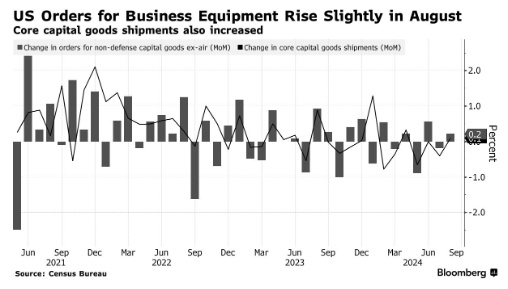 智通财经APP获悉,8月,美国工厂的商业设备订单仅略有增加,这表明企业在美国总统大选和借贷成本进一步下降前限制了投资。