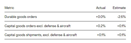 扣除运输设备耐用品订单订单环比增长0.5%。