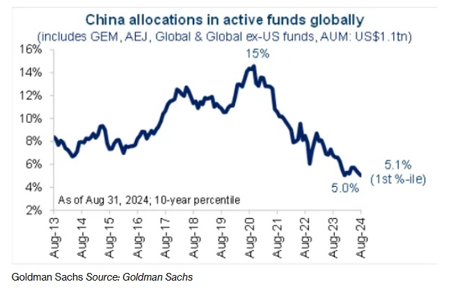 共同基金也有更大的买入空间,但更大的推动力可能来自被动投资者。Scott Rubner表示:“中国和新兴市场资产并不像美国市场那样每天都能从被动资金流入中受益,但这种情况正在改变。”