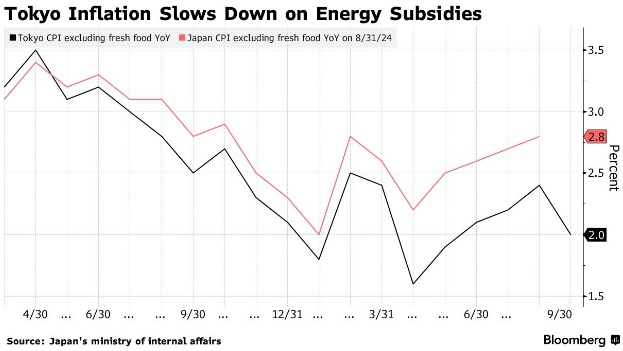智通财经APP获悉,即将卸任的日本首相岸田文雄恢复了能源补贴,以帮助日本家庭度过有记录以来最炎热的夏季之一,本月东京通胀水平有所放缓。日本内务部(ministry of internal affairs)周五公布,9月东京剔除生鲜食品的消费者价格指数(CPI)上涨2.0%,为5月以来的最低涨幅,与经济学家的预估中值相符。剔除能源价格的一项指标则保持在1.6%。