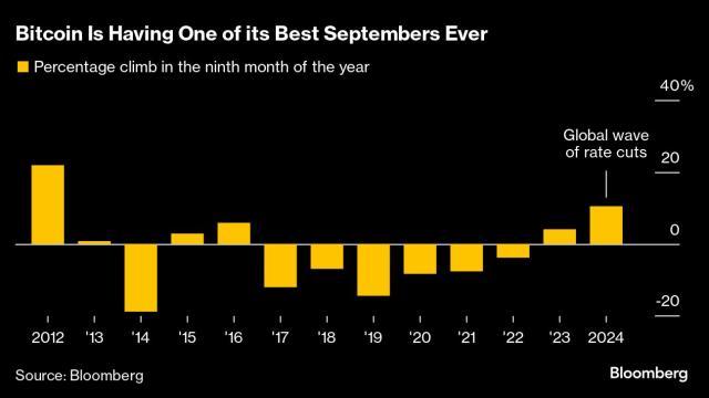 智通财经获悉,比特币有望迎来近年来最大的9月份涨幅之一,以美联储为首的全球降息浪潮,帮助这种最大的数字资产顶住了季节性厄运。数据显示,该代币本月上涨了10%以上,而在过去十年中,9月份的平均跌幅为5.9%。而小型加密货币的指数上涨了20%以上,这表明金融环境的宽松使加密市场中风险较高的部分活跃起来。