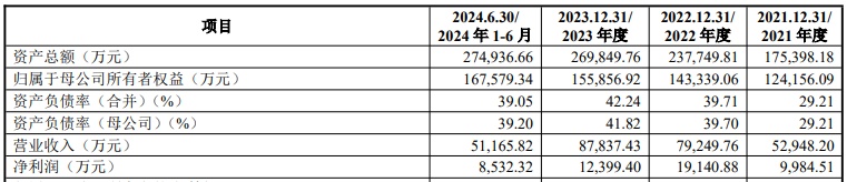 财务方面,2021年度、2022年度、2023年度及2024年1-6月,兴福电子实现营业收入分别约为人民币5.29亿元、7.92亿元、8.78亿元、5.12亿元,同期净利润约为9984.51万元、1.91亿元、1.24亿元、8532.32万元。