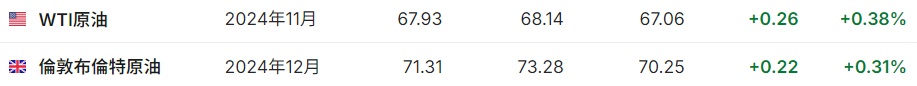 3. 截至发稿,WTI原油涨0.38%,报67.93美元/桶。布伦特原油涨0.31%,报71.31美元/桶。