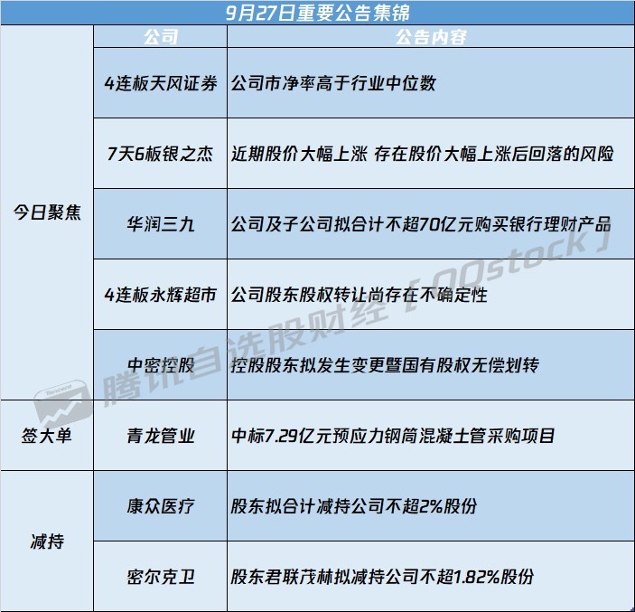 3、华润三九:公司及子公司拟合计不超70亿元购买银行理财产品