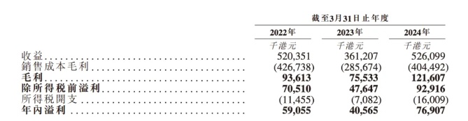 业务平稳推进的同时,公司的业绩表现呈现波动增长态势。2021/22财年、2022/23财年、2023/24财年(以下简称:报告期内),荣利营造收益分别为5.2亿元(单位:港元,下同)、3.61亿元及5.26亿元,年复合增长率为0.55%;年内溢利分别为5905.5万元、4056.5万元及7690.7万元,年复合增长率为14.12%。公司业绩存在波动,其中2022-23财年营收和净利润均出现下滑。