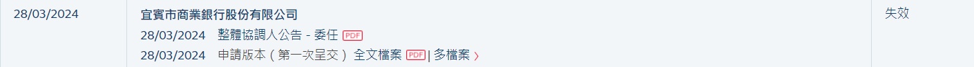 智通财经APP获悉,宜宾市商业银行股份有限公司于2024年3月28日所递交的港股招股书满6个月,于9月28日失效,递表时建银国际、工银国际为其联席保荐人。此前该行在2023年6月30日首次递表后已失效。