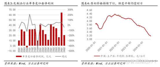 二是随着牧场集中度、规模化程度的提升,牧场在经营和财务方面的抗风险能力也有所提升,因此在奶价下行导致盈利受损情况下,行业产能没有出现快速去化,因此原奶价格下跌的时长也拖延得更久。