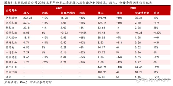 在此背景下,多数乳制品上半年出现营收利润双降的局面,就连行业两大巨头蒙牛乳业和伊利股份也未能完全抵御住行业的下行压力。其中,蒙牛乳业上半年收入同比下滑12.6%至446.71亿元,归母净利润同比减少19.0%,至24.46亿元;伊利股份上半年营业收入同比下滑9.53%,至596.96亿元。
