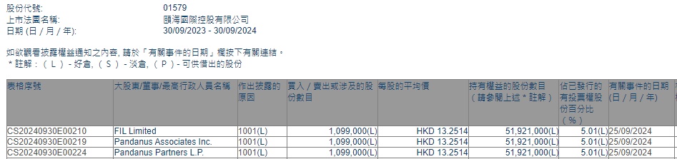 智通财经APP获悉,香港联交所最新资料显示,9月25日,富达国际增持颐海国际(01579)109.9万股,每股作价13.2514港元,总金额约为1456.33万港元。增持后最新持股数目为5192.1万股,最新持股比例为5.01%。