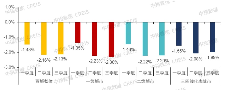前三季度,各梯队城市二手房价格累计跌幅均扩大