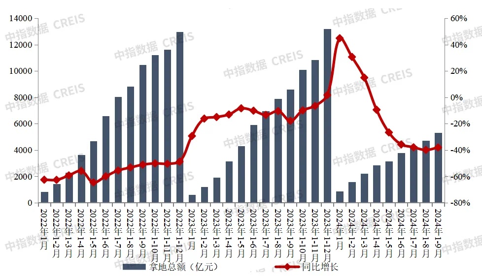 图:2022年1月-2024年9月TOP100房企累计拿地总额
