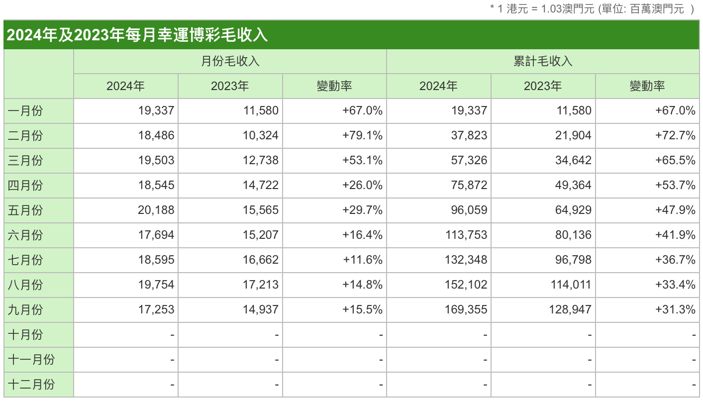 澳门9月幸运博彩毛收入172.53亿澳门元 同比增长15.5%