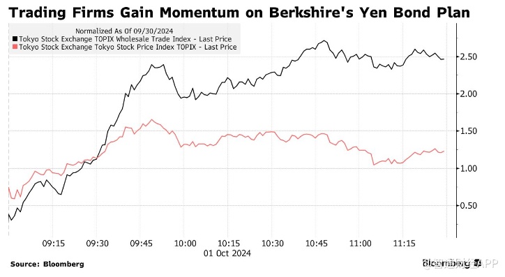 智通财经APP获悉,“股神”沃伦•巴菲特旗下的伯克希尔哈撒韦公司正计划今年第二次发行日元债券,引发市场猜测该公司寻求增加在日本的投资,日本商社类股票应声走高。