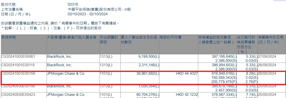 智通财经APP获悉,香港联交所最新资料显示,9月26日,小摩增持中国平安(02318)3986.1682万股,每股作价44.4327港元,总金额约为17.71亿港元。增持后最新持股数目约为6.17亿股,最新持股比例为8.28%。