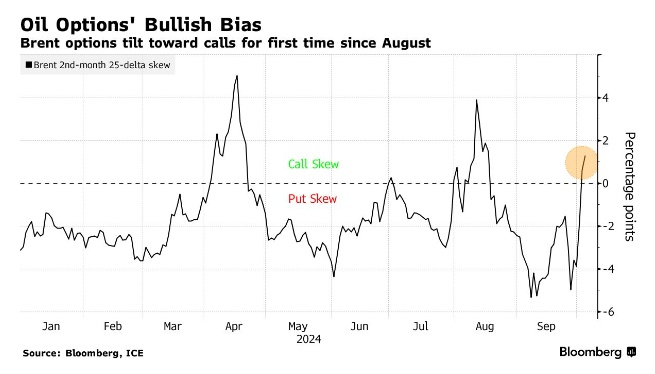 在石油市场上,看涨期权较看跌期权溢价是很罕见的,尽管自去年以色列和哈马斯爆发冲突以来,这样的情况已经发生过几次。