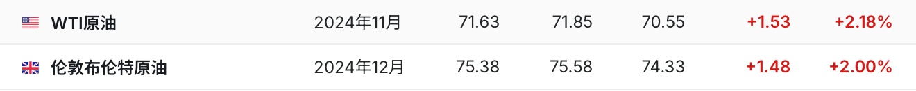 3. 截至发稿,WTI原油涨2.18%,报71.63美元/桶。布伦特原油涨2.00%,报75.38美元/桶。