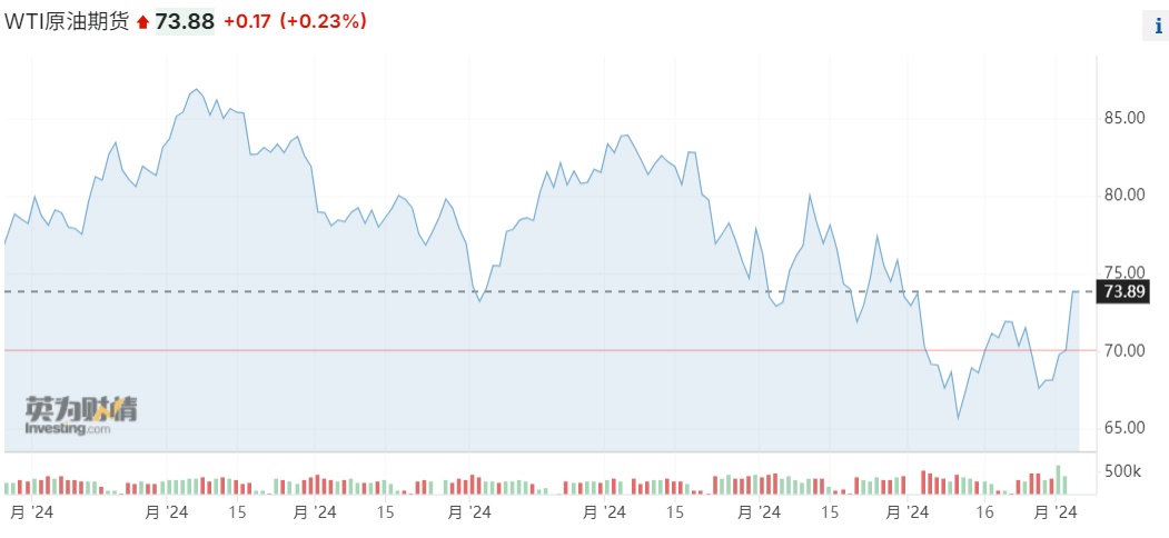 智通财经获悉,美国原油期货价格周四飙升,创下一年前10月13日以来的最大单日涨幅。此前,美国总统拜登对记者发表讲话,似乎证实美国正在讨论建议以色列袭击伊朗石油设施的可能性。花旗分析师本周表示,以色列对伊朗出口能力的重大打击,可能使市场上减少多达150万桶/天的石油供应。分析师表示,如果以色列袭击下游资产等小型基础设施,可能会损失30万至45万桶的产量。