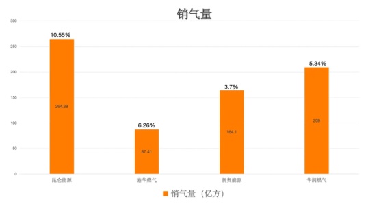 在销气量方面,昆仑能源上半年总销量和同比增速都领先同业,实现天然气销量264.38亿立方米,同比增长10.55%,其中零售气量163.02亿立方米,同比增长10.25%。