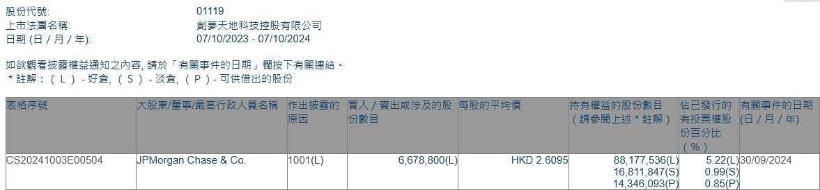 智通财经APP获悉,香港联交所数据显示,9月30日,小摩增持创梦天地(01119)667.88万股,每股作价2.6095港元,总金额约1742.83万港元。增持后最新持股数目约为8817.75万股,持股比例为5.22%。