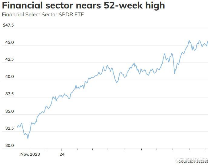 截至本周一下午的交易水平,2024年美国股市整体表现强劲,标普500指数今年迄今为止上涨超过19%,金融板块的表现与其相似。