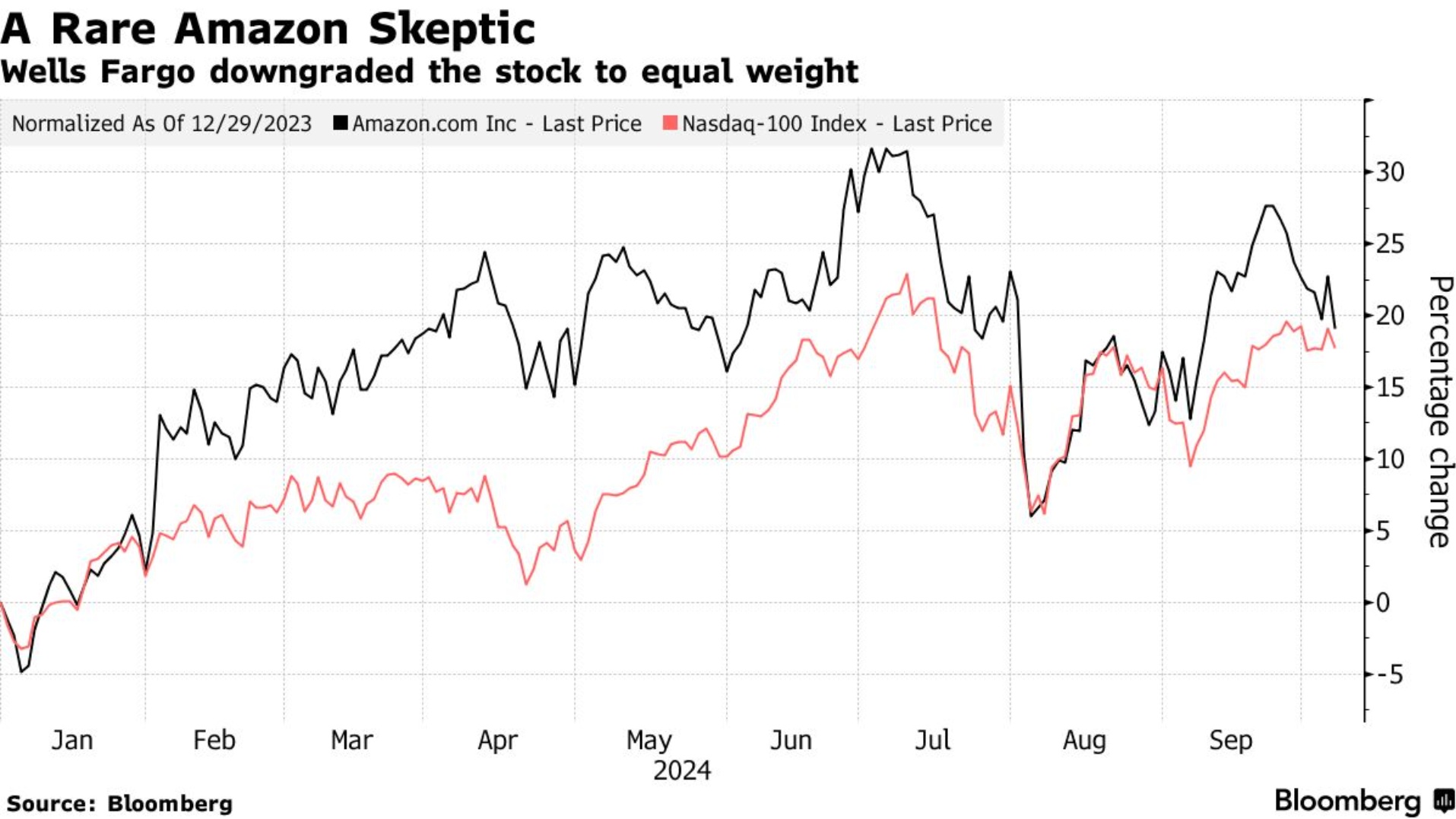 Gawrelski罕见地下调了对该公司的评级,从“增持”降至“持股观望”,并将目标价从225美元大幅削减至183美元。这一调整反映了市场对于亚马逊明年利润率趋势的担忧,尽管云计算业务的增长前景被看好,但似乎不足以抵消这一负面影响。尽管如此,亚马逊的股价今年仍上涨了19%,略高于纳斯达克100指数的18%涨幅。