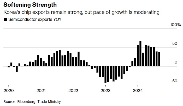 8月,韩国芯片产品库存以 2009 年以来最快的速度减少,表明对人工智能开发使用的高性能存储芯片的需求持续存在。数据显示,韩国芯片库存较上年同期下降 42.6%,降幅高于7月份报告的 34.3%。产量和出货量分别增长 10.3% 和 16.1%,这进一步表明全球芯片行业繁荣周期在第三季度的大部分时间里持续。