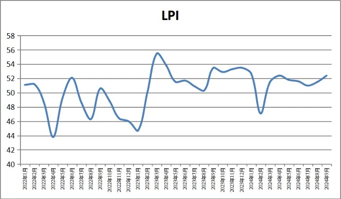 中国物流与采购联合会发布的2024年9月份中国物流业景气指数为52.4%,环比回升0.9个百分点。9月份,供应链上下游进一步复苏,公路、铁路、航空和电商快递等物流实物量稳步增长,业务总量指数、新订单指数、业务活动预期指数连续回升,保持扩张区间运行,反映三季度以来物流供需保持适配增长、内生动力韧性回升,物流“金九”如期而至。