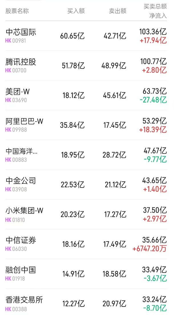中芯国际(00981)获净买入18.08亿港元。消息面上,高盛发表研究报告指,预计晶圆企业会因为对国产半导体制造的需求上升而受惠,推动长期收入扩张,但利润仍因为定价及产能扩充带来的折旧负担而受压。该行指,内地晶圆厂为了抓紧本地需求上升而按计划扩张产能,对长期机遇持正面看法。华泰证券此前表示,看好后续港股半导体制造板块估值修复持续性。