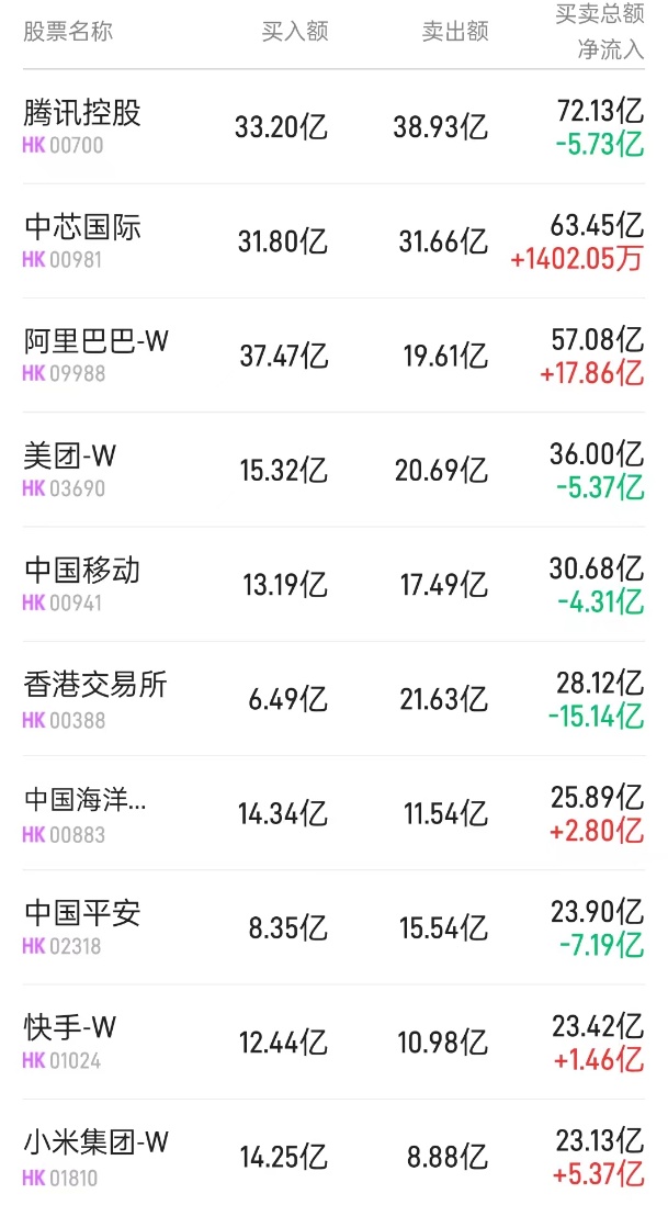 此外,小米集团-W(01810)获净买入8.33亿港元。而中国移动(00941)、融创中国(01918)分别遭净卖出4.3亿、3.66亿港元。
