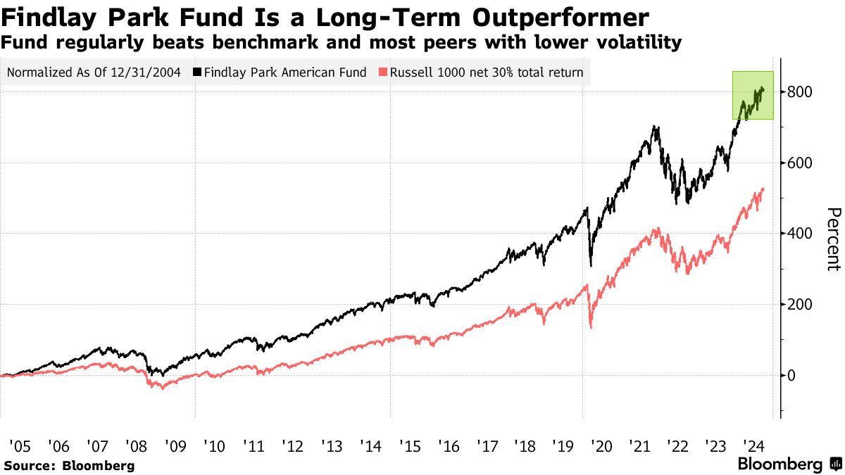 据悉,Findlay Park Partners LLP在旨在保护散户投资者的欧洲UCITS框架下运营,主要投资于美国市场。数据显示,该基金过去一年的回报率约为29%,而同行的回报率约为16%,且该基金的波动性较低;2023年,该基金的表现超过了90%的同行。