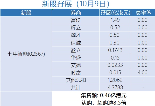 新股孖展统计 | 10月9日
