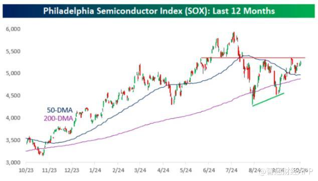Bespoke在周三的一份电子邮件报告中指出,虽然英伟达的“技术走势可能有所改善,整个半导体板块的表现并不强劲”。他们还表示,“费城半导体指数”整个夏季一直受到阻力压制,尽管该指数已经超过了50日和200日均线。