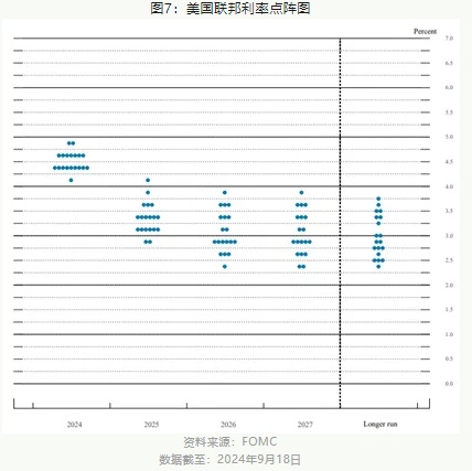 2024年9月19日(香港时间),美联储下调联邦基金利率50个基点至4.75%-5.00%的区间,高于预期(市场预期为下调25个基点),这是四年多来的首次降息。美联储本次降息旨在提振美国劳动力市场,因FOMC对通胀持续朝2%目标迈进的信心增强。至于利率轨迹,美联储主席鲍威尔表示,降息50个基点不应被视为新的步伐。值得注意的是,最新的FOMC预测联邦基金利率将分别在2024年/2025年/2026年进一步下调50个基点/100个基点/50个基点,这意味着到2026年年底预计利率将合共下调200个基点至2.75%-3.00%区间。降息周期或已就此展开。