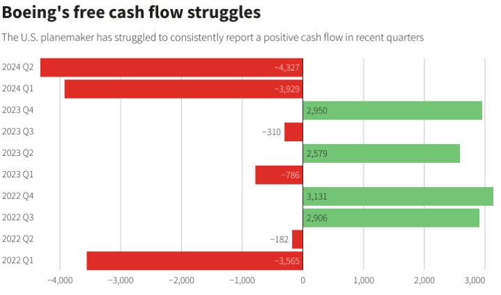 甚至在9月13日罢工开始之前,该公司就已经在烧钱了,因为它正努力从1月份一架新飞机的空中面板爆炸中恢复,那次事故暴露了安全协议的薄弱,并促使美国监管机构限制了该飞机的生产。国际机械师和航空航天工人协会(IAM)美国西海岸成员的罢工导致波音公司热销的737 MAX、767和777喷气式飞机停产。