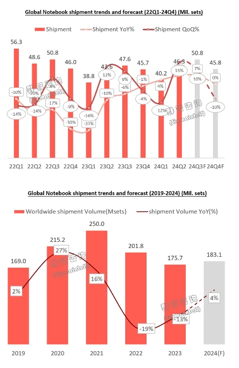 2024年上半年,全球笔记本电脑(笔电)市场展现出前所未有的蓬勃生机,前两个季度均实现了同比显著增长,为全年市场的强劲复苏铺设了坚实的基石。受低端市场需求旺盛及海外市场的补库存需求的双重利好,市场自年初便步入复苏快车道。