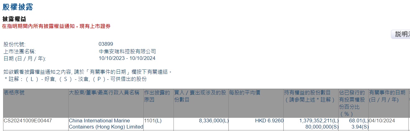智通财经APP获悉,香港联交所最新资料显示,10月4日,China International Marine Containers (Hong Kong)