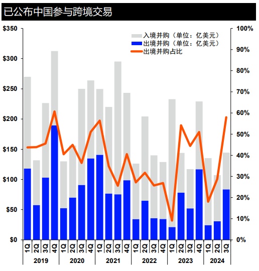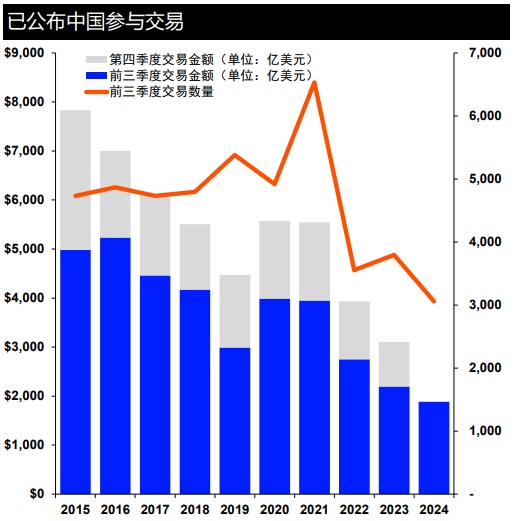 智通财经APP获悉,10月11日,路孚特发布2024年第三季度并购报告和排行榜。2024年前三季度,涉及中资企业的并购总额为1,885亿美元,同比下降14.1%,但比上一季度增长50.4%。已公布的交易数量达到3,058笔,同比减少19.5%,但比上一季度增加3.8%。