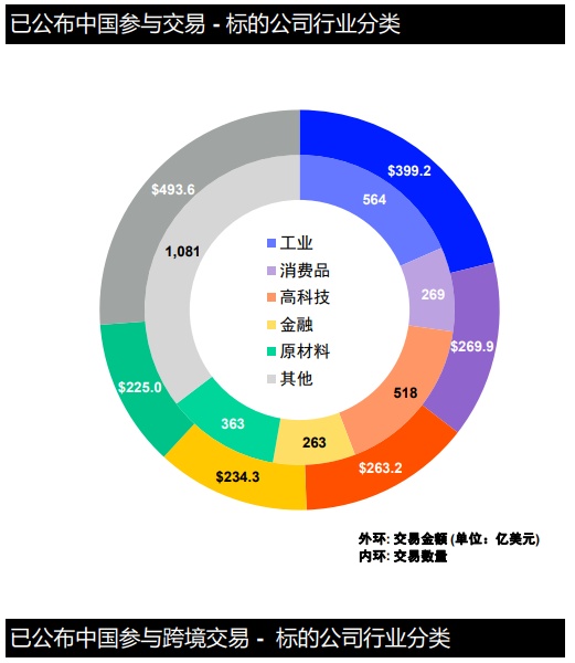 中资企业的海外收购总额为139亿美元,同比下降8.1%。外国公司收购中资公司的交易总额为248亿美元,同比下降27.7%。境内并购总额为1,385亿美元,同比下降14.9%。