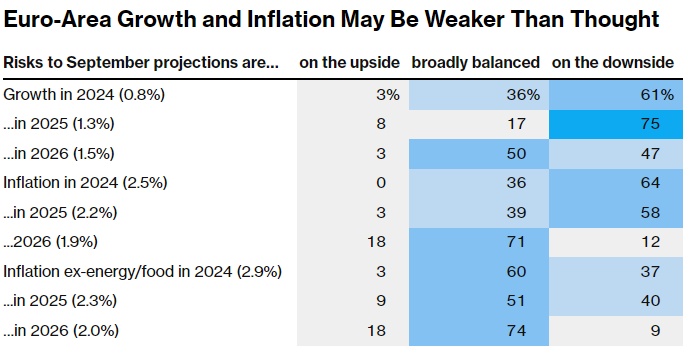 欧洲央行上月的预测显示,通胀目标将在2025年最后一个季度实现。经济学家说,从那以后,通胀下行风险开始累积。55%的人认为,中期通胀低于目标的风险大于超出目标的分线。