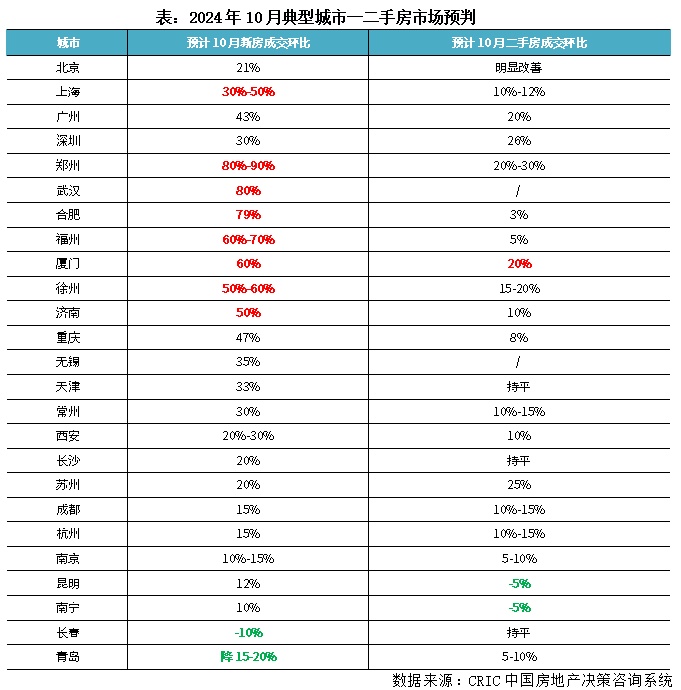 预判:10月供应转降,成交因新政驱动或将环比增3-5成,一线延续高热