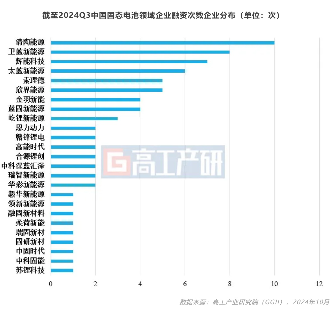 从融资轮数来看,清陶能源融资轮数最多,达10轮;卫蓝新能源、辉能科技分别位列第二、第三,融资次数分别为8轮、7轮。