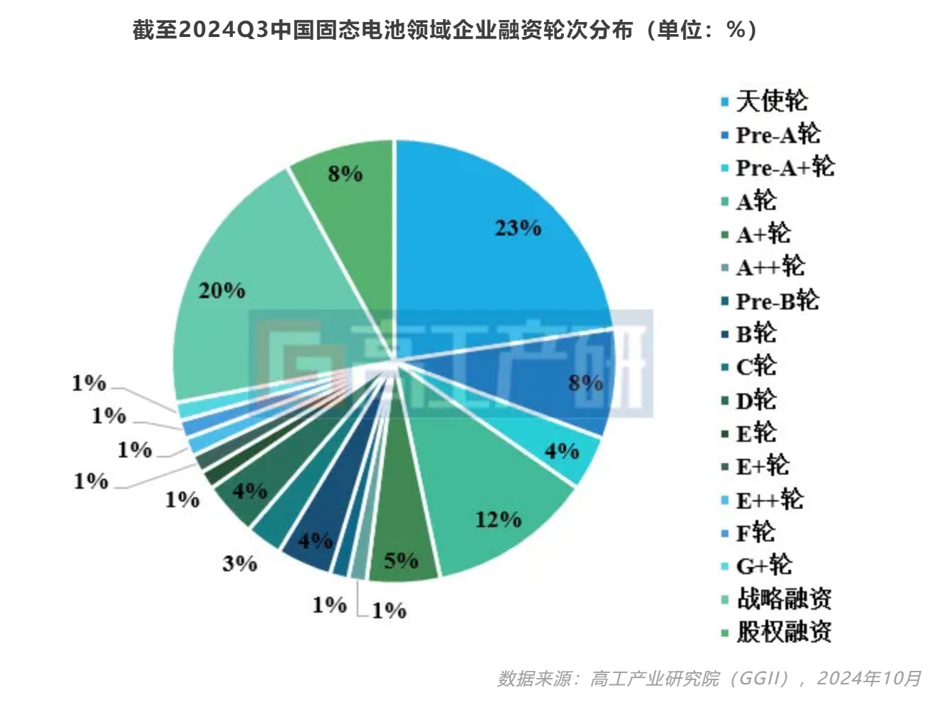 从融资轮次来看,多数固态电池领域企业还处于融资初级阶段,天使轮至A++轮占比约53%,Pre-B轮至G+轮占比约18%。