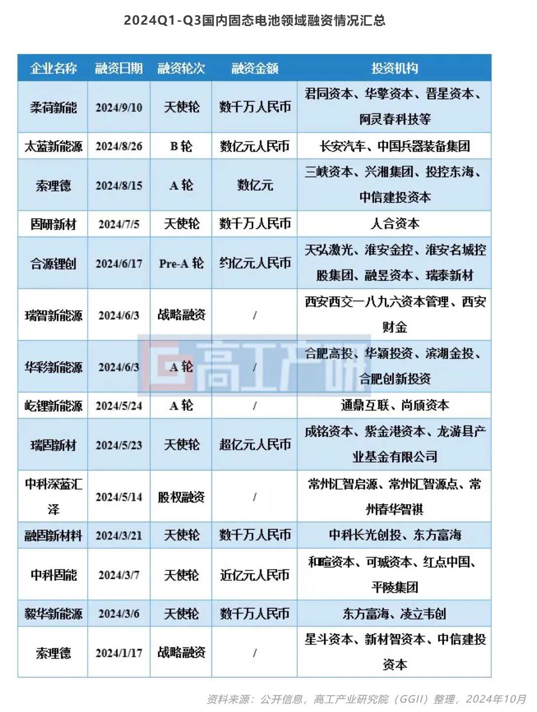 总体来看,尽管目前资本市场大环境不景气,但作为趋势性产品,固态电池产业链仍受到了资本市场的极大关注,GGII预计2024年全年固态电池产业链融资项目数和融资金额都有望超过2023年,再创新高。