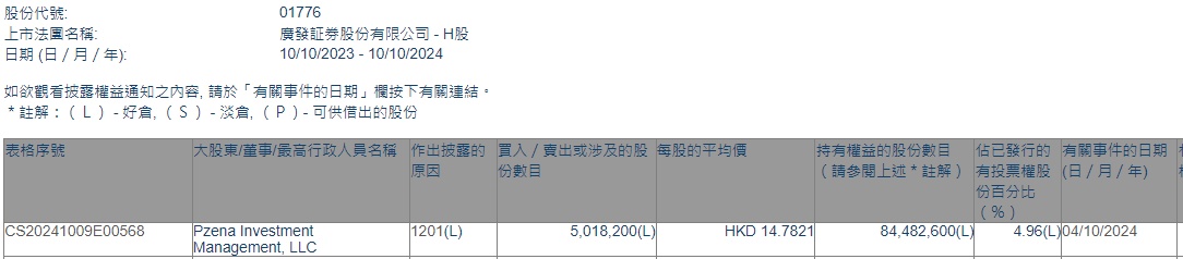 LLC减持广发证券(01776)501.82万股,每股作价14.7821港元,总金额约为7417.95万港元。减持后最新持股数目为8448.26万股,最新持股比例为4.96%。