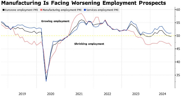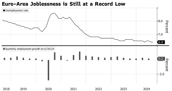 在经历了多年出人意料的弹性之后,欧元区劳动力市场终于出现了裂缝,这将有利于推动欧洲央行更快地降低利率。尽管在通胀冲击和经济陷入困境之后,失业率仍处于创纪录低位,但政策制定者看到了就业市场转变的迹象,这有助于说服他们本周支持再次下调借贷成本。
