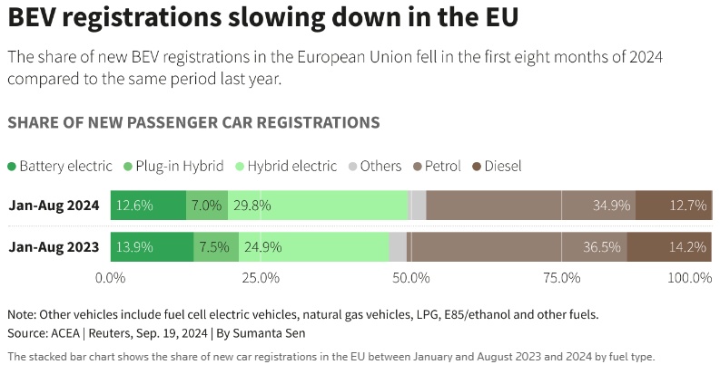 智通财经APP注意到,尽管欧盟禁止内燃机汽车的禁令将于2035年生效,但欧洲对昂贵的电动汽车的需求并未起飞,这给欧洲汽车行业带来了巨大压力。