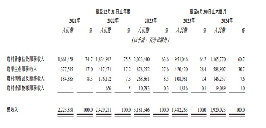 财务表现来看,2021年至2024年上半年,中和农信实现总收入分别约为22.24亿元(单位:人民币,下同)、24.29亿元、31.81亿元、及19.20亿元人民币;同期,该公司年内利润分别为-3643.8万元、约-1.99亿元、约2.06亿元及7909.1万元。